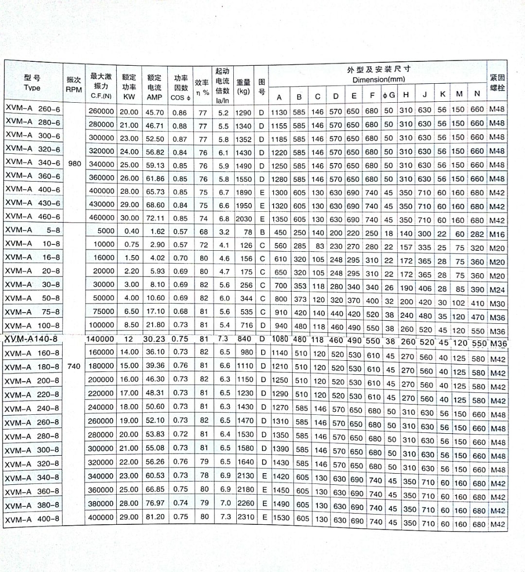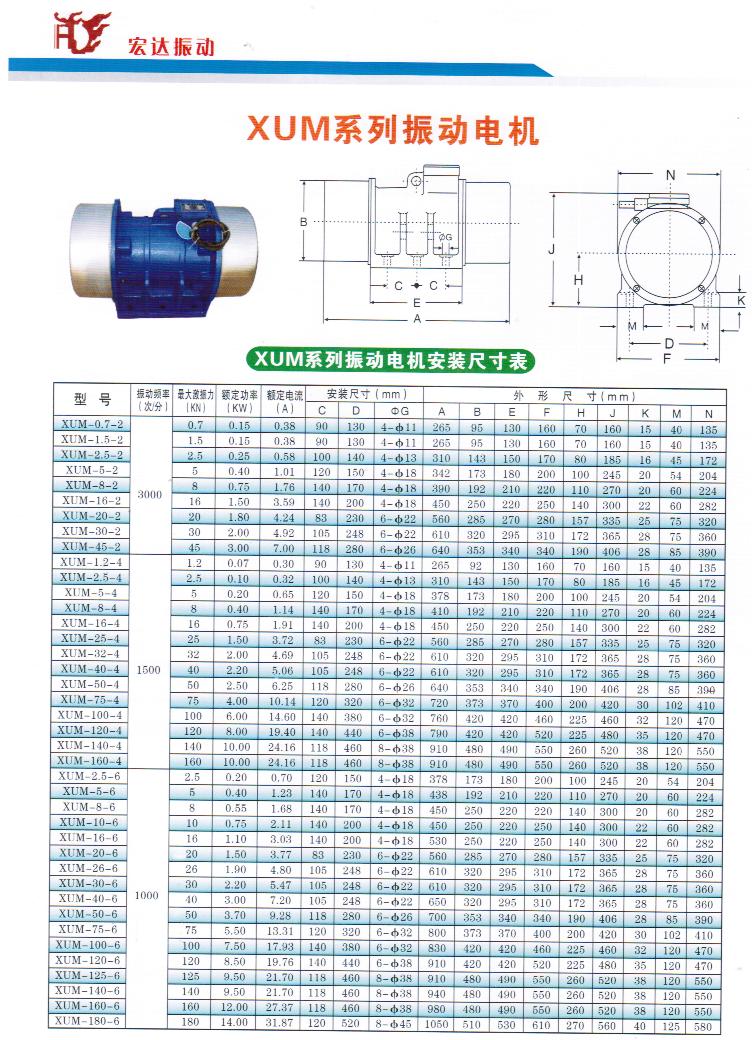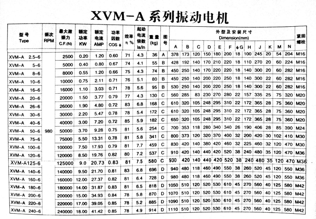 三、XVM-A振動電機的技術參數: