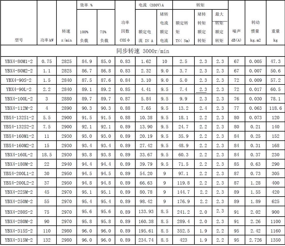 YBX4 系列電動機為我公司自主研發推出的全封閉、自扇冷、鼠籠式高效率隔爆型三相異步電動機。效率指標符合 GB18613-2012《中小型三相異步電動機能效限定值及能效等級》中的能效等級 1 級,且具有性能優良,使用安全可靠,振動、噪聲比同類產品低的特點,符合環保要求。